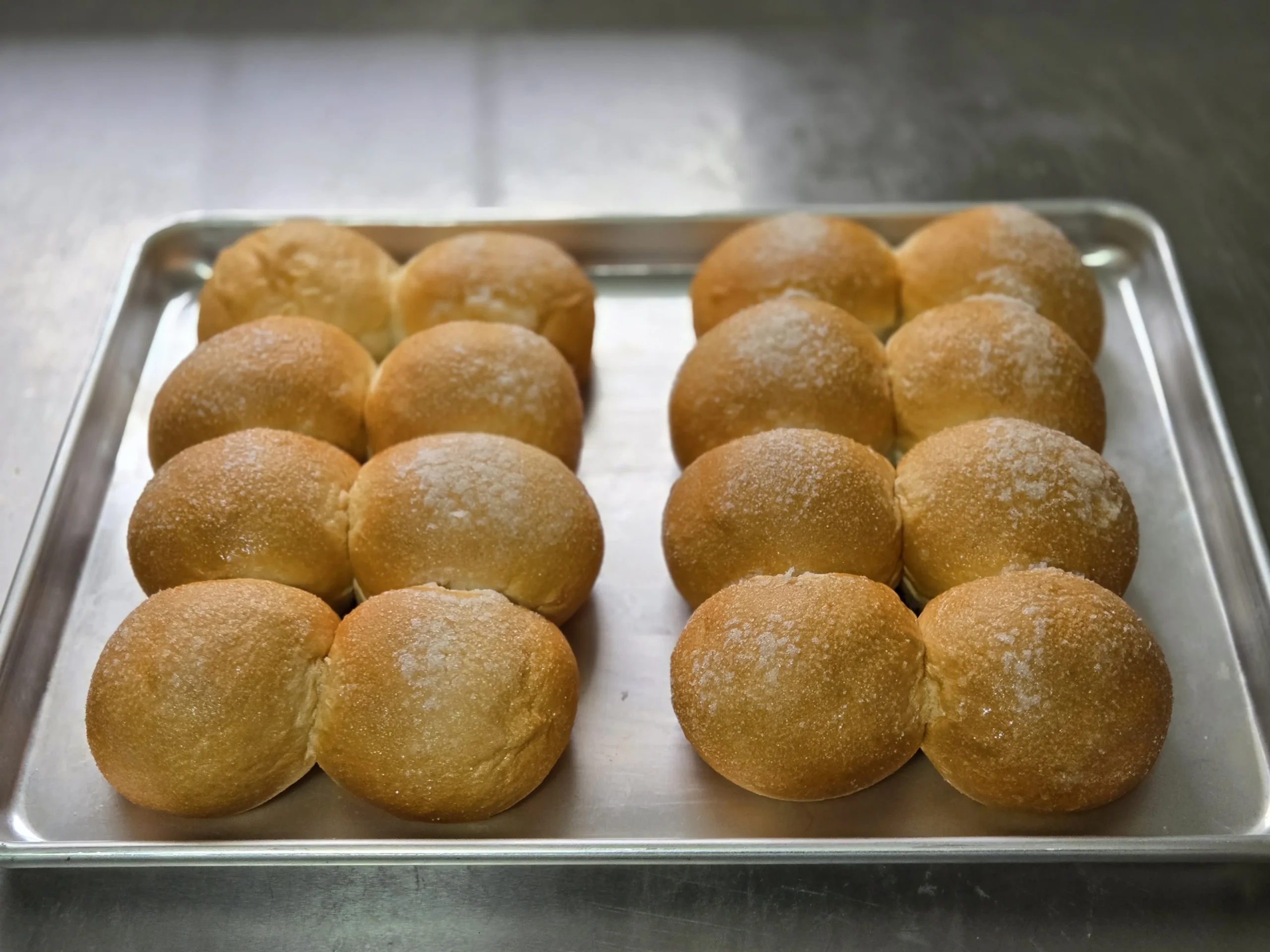 Destaca por su miga suave y esponjosa y su exterior dorado y azucarado que le da un toque crujiente. Su nombre se debe a la forma redonda.